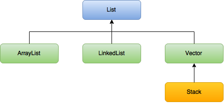 List는 ArrayList, LinkedList, Vector와 Vector를 상속받는 Stack이 있다